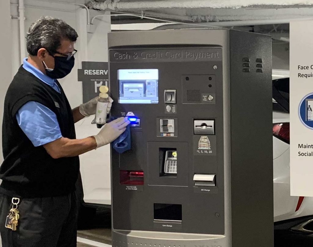 - Hand sanitizer dispensers are located in the elevator lobbies, parking office, security office, management offices