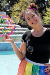 Megan The Bubbleologist creates all sorts of amazing bubbles with colorful, fun bubble-wands of all shapes and sizes. Megan’s personality matches her act! This bubbly entertainer has excited kids of all ages across the US. Past shows include the Apollo Theatre in NYC, The Magic Castle in Los Angeles and recently she was featured on an episode of BLIPPI. Anyone who watches Megan The Bubbleologist is sure to have a BUBBLY time!